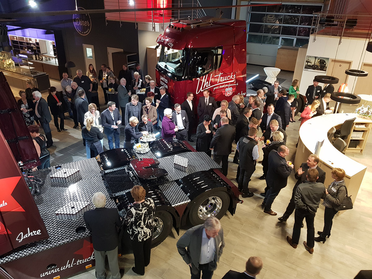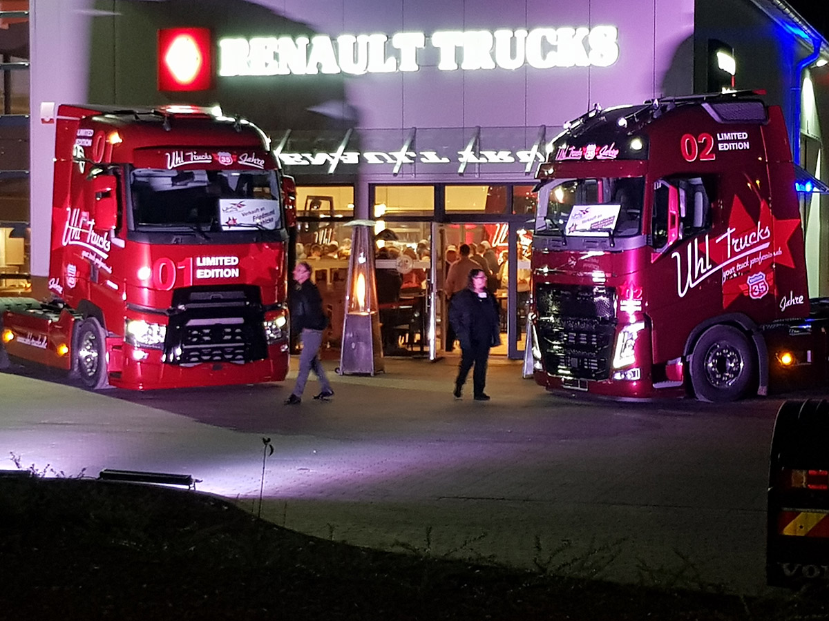 Doch nicht nur die Eröffnung des neuen Gebäudes gab Anlass zum Feiern. Gleichzeitig feiern wir nun 35 jähriges Firmenbestehen. Und zu diesem Anlass gibt es eine Uhl Trucks 35 Jahre Sonderedition mit streng limitierten Sonderfahrzeugen. Mehr zur 35 Jahre Edition folgt in Kürze.