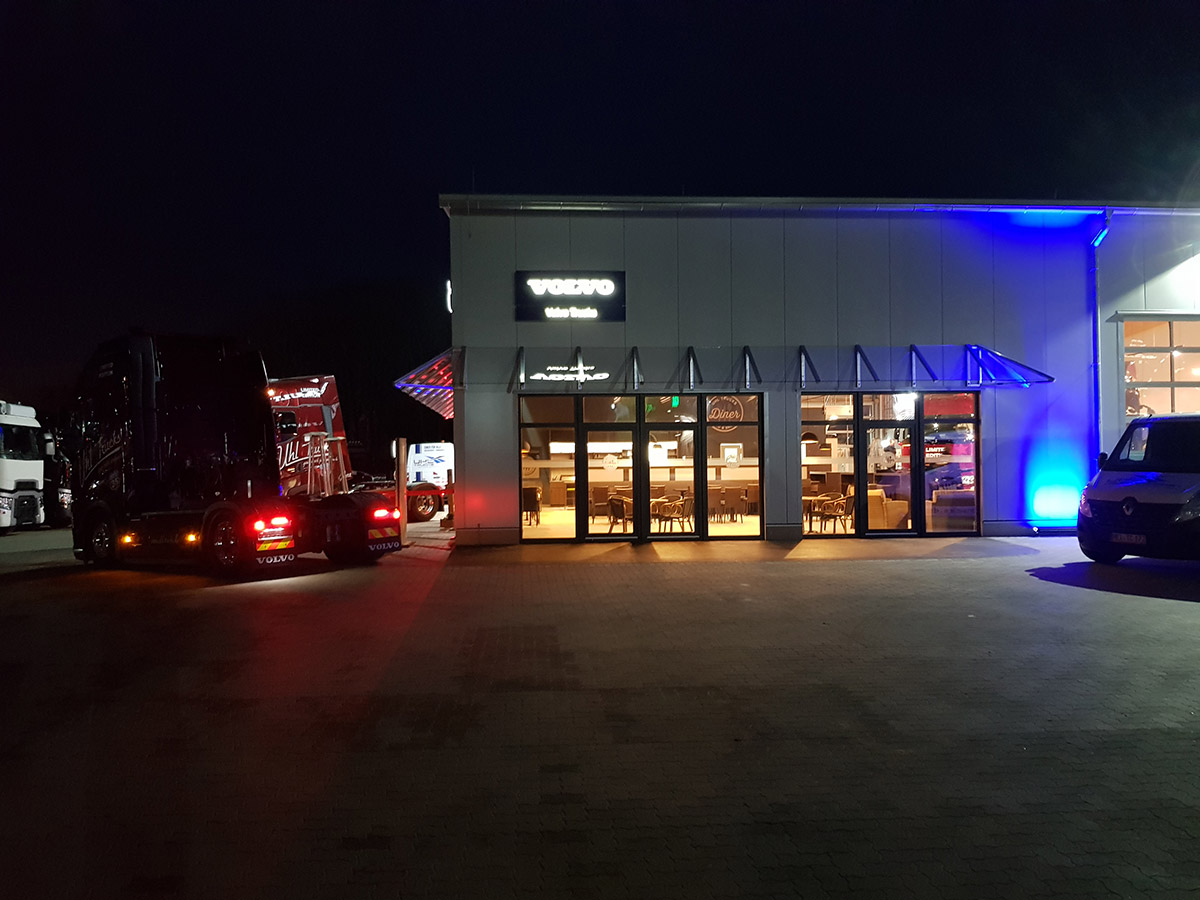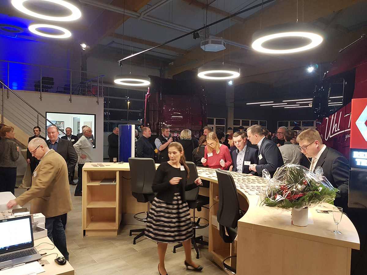 Am 15.12.2018 fand dann die große Eröffnung mit geladenen Gästen in dem neuen Gebäude statt. Nach einer kurzen Begrüßung von Reimer und Carsten Uhl fand sich Zeit, um in gemütlichem Ambiente zu essen und spannende Gespräche zu führen. Der Höhepunkt des Abends war die offizielle Eröffnung und Bandanschnitt durch Reimer Uhl (Firmengründer), Carsten Uhl (Geschäftsführer), Peter Dau (Betriebsleiter Uhl Trucks & Trailer Zentrum GmbH) und Christian Coolsaet (Geschäftsführer Volvo Group Trucks Central Europe GmbH).